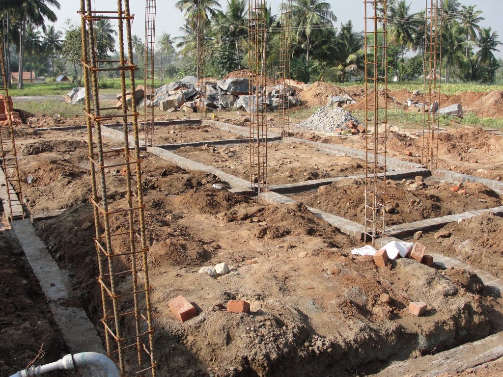 Tanah yang akan dibangun harus dipastikan tanah yang kuat menahan beban bangunan di atasnya mulai beban pondasi, sloof, kolom, ring balok, tembok, konstruksi atap dan bagian lainnya seperti plafon, pintu, jendela, dan tangki air. Pada kondisi tanah normal, artinya tanah cukup keras yang jika digali sekitar 80 cm sudah mencapai kekerasan cukup ditandai dengan beratnya cangkul/ganco itu pertanda tanahnya cukup kuat, mencapai tegangan sekitar 2 kg/cm2 atau sekitar 0,2 N/mm2.